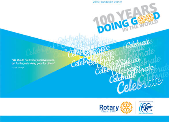 Devarj Design Agency was responsible for a variety of projects for Rotary Club Districy 6540, including incorporating strategy, identity, positioning, email marketing, radio spots, designing program books, announcements, invitations and website landing pages and social media services. Projects included "Water is Life", "100 Years doing good in the world", "one world. One Rotary", and "celebrating 100 Years, 100 New Members in 100 days."